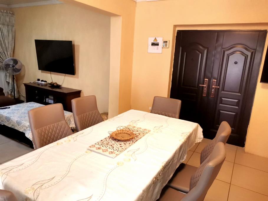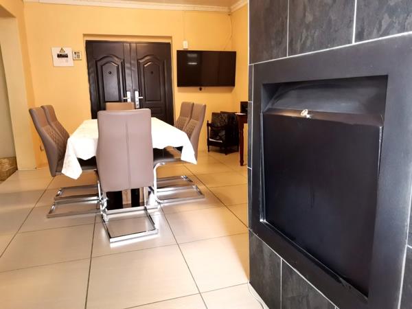 The kitchen is a chefs delight, offering a separate, well-equipped space for meal preparation. With ample storage and counter space, its designed to cater to all your culinary needs. Plus, the back door leads directly outside, making it easy to access the outdoor areas for a Braai or simply enjoying the fresh air.