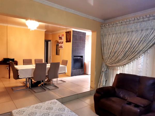 The home features a large open plan living and dining area, where natural light floods the space, creating a warm and inviting atmosphere. A cozy fireplace adds to the charm of the living room, perfect for those chilly evenings. The open-plan design seamlessly connects the living and dining areas, making it an ideal setting for family gatherings or entertaining guests.