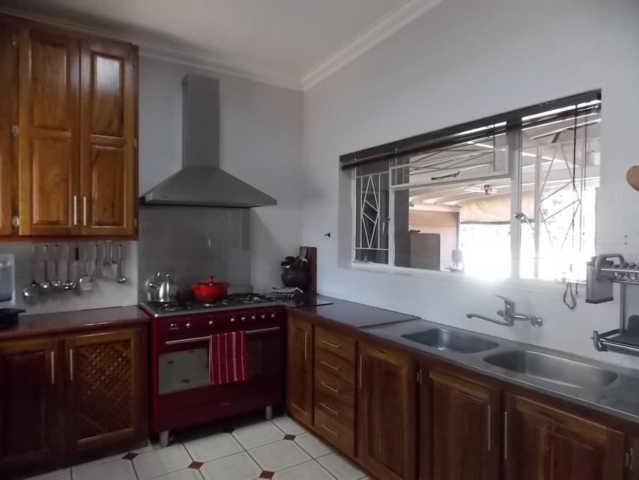 A swimming pool with entertainment area, built in braai plus a huge, neat workshop, plenty parking space, borehole and Jojo tank. It also offers two garages plus undercover parking.