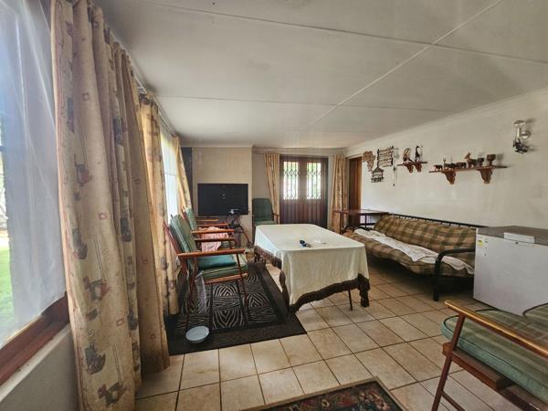 Servants toilet, borehole with sprinkler system, and a 2500L water tank with pressure pump