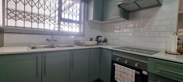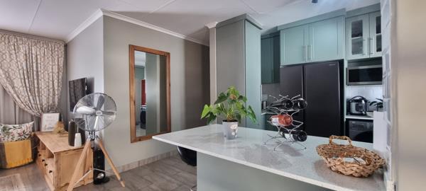 The home features a spacious open-plan living room and kitchen, creating a warm and welcoming environment ideal for both everyday living and entertaining. The kitchen is fitted with built-in cupboards, a hob, and a stove offering functionality and ample storage for all your cooking needs.