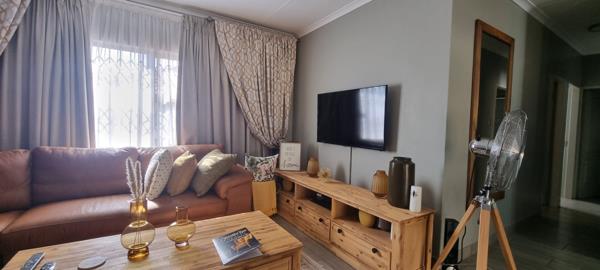 There are three well-sized bedrooms, each with built-in cupboards, providing plenty of storage for the whole family. The main bedroom includes an en suite bathroom for added privacy and comfort, while a second bathroom serves the other two bedrooms and guests with ease.