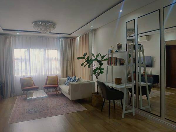 A sunlit open-plan lounge fitted with an air conditioner sets the tone for modern comfort.