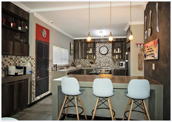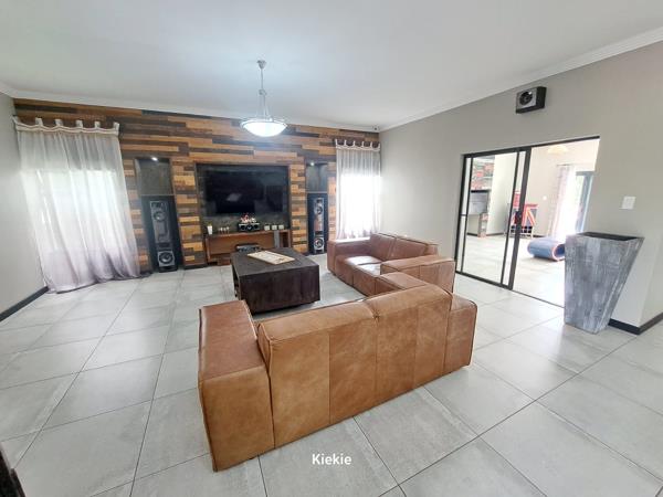 Neatly crafted open-plan living areas including lounge, dining room, kitchen, and entertainmentbraai room