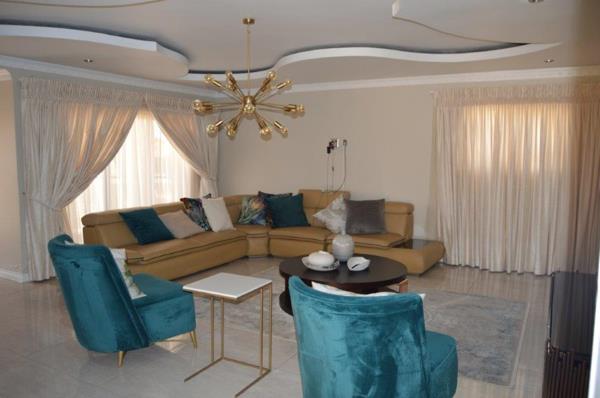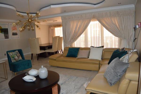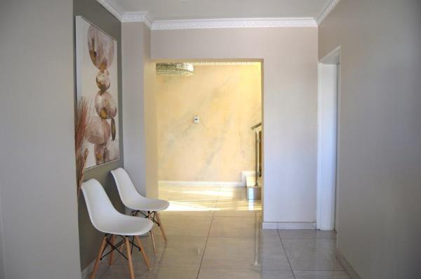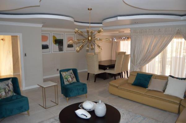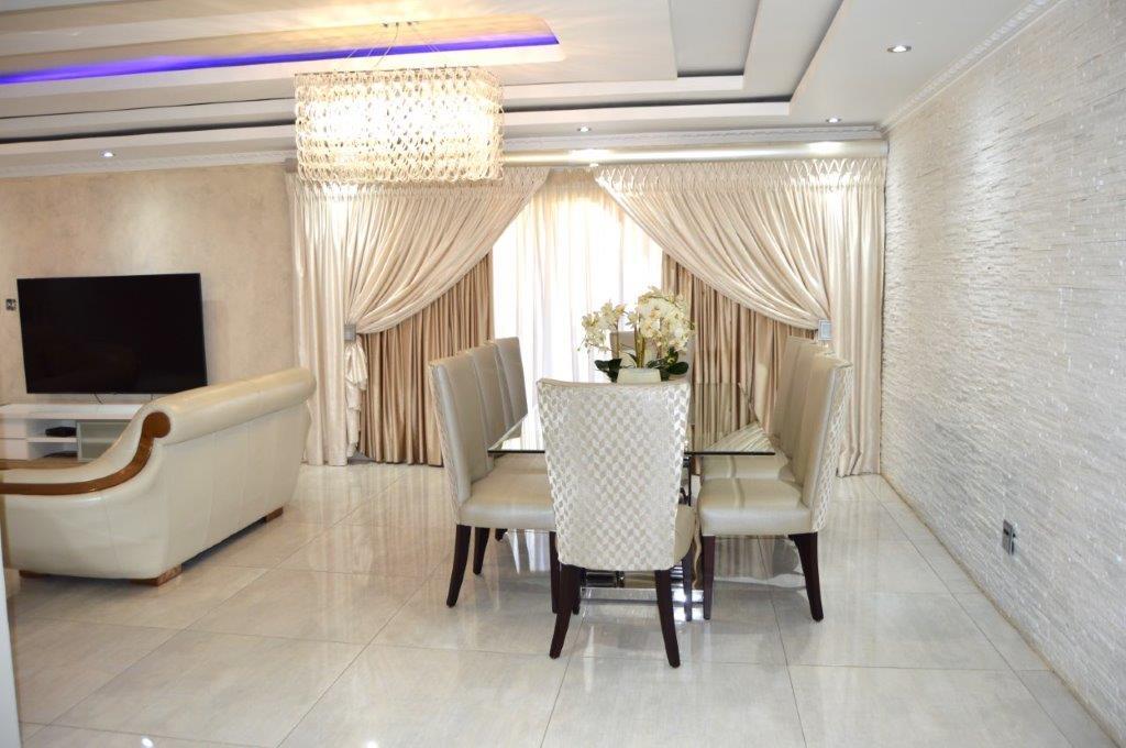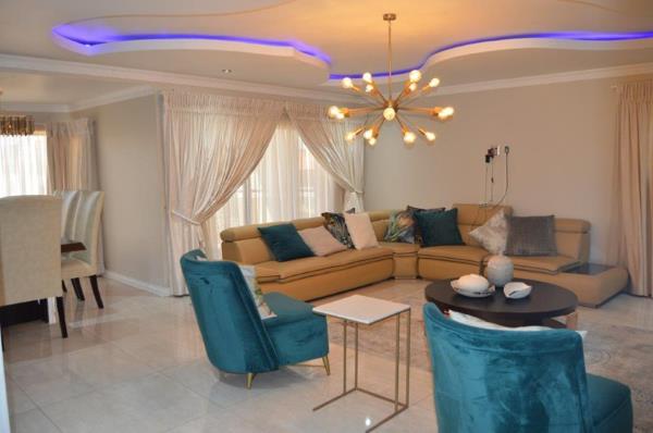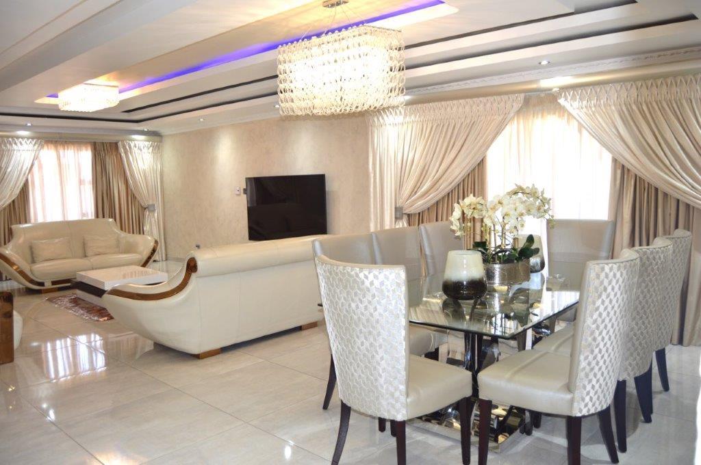 This unique 5 bedroom double storey modern home with 4.5 bathrooms is in a secure complex with 24 hrs security near Mall Of The North. It has 2 spacious dining rooms, 2 lounges with nice ceilings and tiled floors leading to a balcony with beautiful finishes and an elegant kitchen design for style and functionality, double garage with automatic doors. Every room in this house is spacious and has fine finishes. To view it, call now.