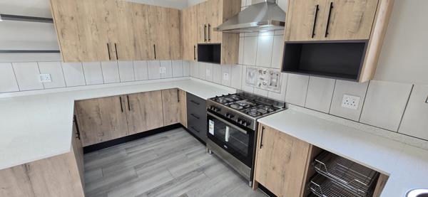 The open-plan living and dining area flows seamlessly into a modern kitchen designed for both function and flair with abundant cupboard space, quality finishes, and a freestanding stove featuring a gas hob. A separate scullery keeps the mess out of sight and accommodates your washing machine, double-door fridge, and more.