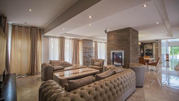 Entertainment and relaxation are at the heart of this home, with a striking double-sided central fireplace, a beautifully designed bar room as well as a sparkling swimming pool with sun deck.