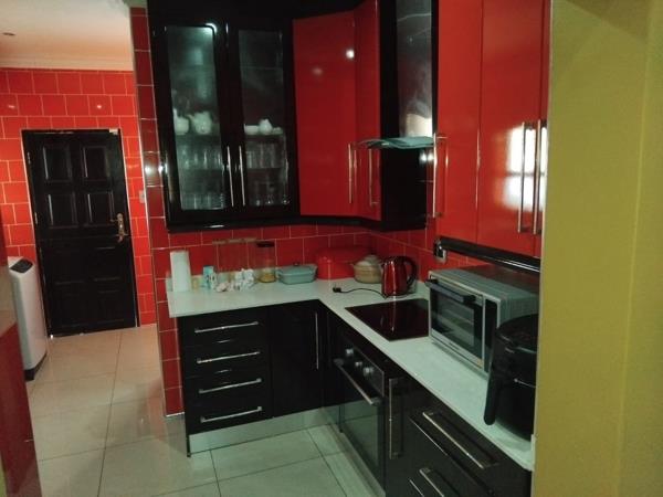 The homes open-plan living spaces flow seamlessly, ideal for entertaining and relaxed family time. The spacious dining area connects effortlessly to the inviting living room, while the modern red kitchen adds a bold touch of personality. A separate scullery ensures practicality without compromising style.