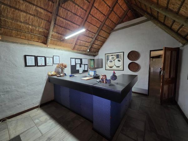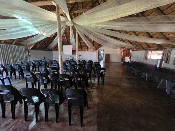 - Welcoming reception, a stunning thatched roof Lapa capable of hosting 80 guests, and a fully equipped restaurant and industrial kitchen inspire hospitality at its finest.