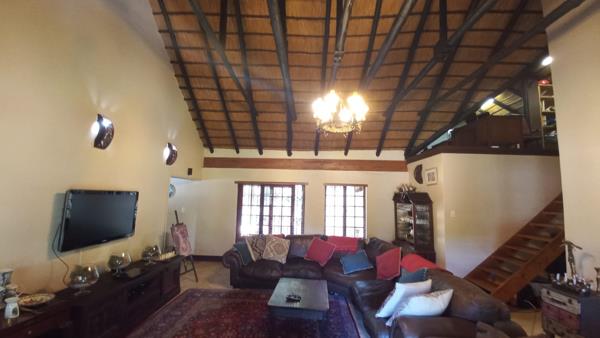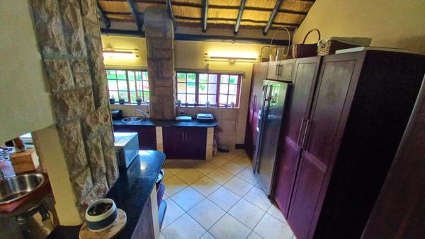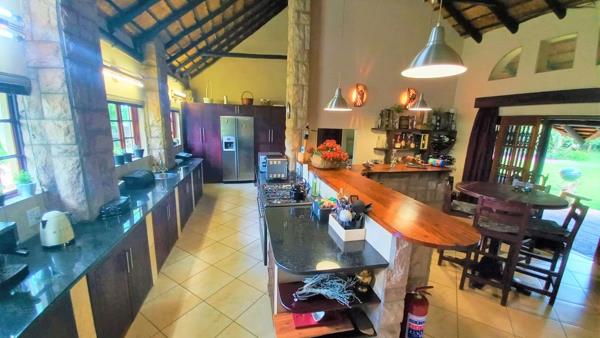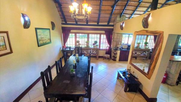 This 2HA smallholding has a modern 4 bedroom, 3 bathroom thatch roof home nestled in a lush, tranquil, exquisite garden with shady trees, shrubs and plants that forms your own little paradise with its never ending lawn and sparkling pool.