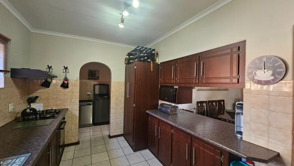 Stepping inside, youre welcomed by a small foyer that branches off in two directions. To the left is a spacious living room filled with natural light, complete with a sliding door that opens to a sunny open-air patioperfect for relaxed weekend gatherings or morning coffees. Just off the living room is the dining room, which flows easily into the kitchen. The kitchen offers more than enough working space and storage, while the separate scullery keeps things functional and out of sight. A second entertainment area sits just off the scullerys back door, offering a covered patio with built-in braaimaking it ideal for all-weather braais and laid-back evenings with friends.
