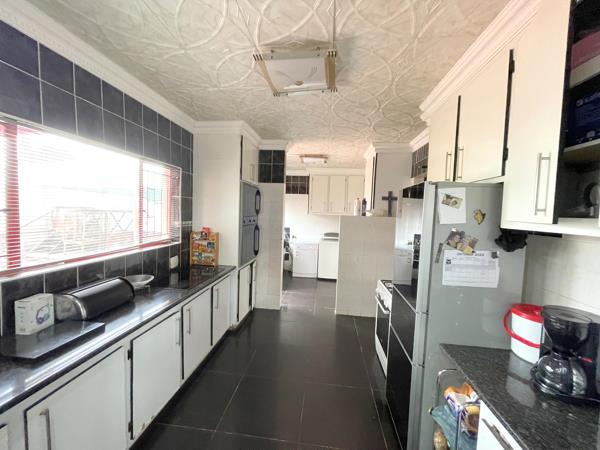 This is truly an amazing home for a family that needs space. As you enter the home, you will be greeted with an amazing garden with loads of lawn and glorious threes. They are kept as beautiful by water from the borehole. Sprinklers are there to ensure the comfort of the garden. Double garages and extra parking spaces for the visitors. The house itself has three living spaces and the kitchen is large.