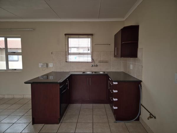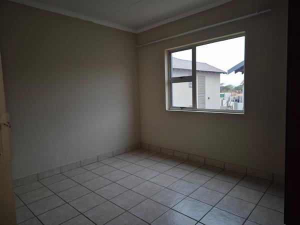 Generously sized flat located within a secure complex, featuring 2 bedrooms and a full bathroom with a separate toilet. The open-plan layout encompasses a kitchen, lounge, and dining area, all leading to a large balcony. The property is fully tiled throughout and is situated in a well-managed complex.