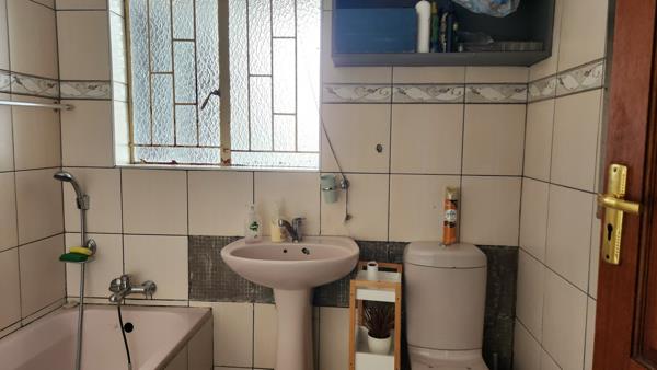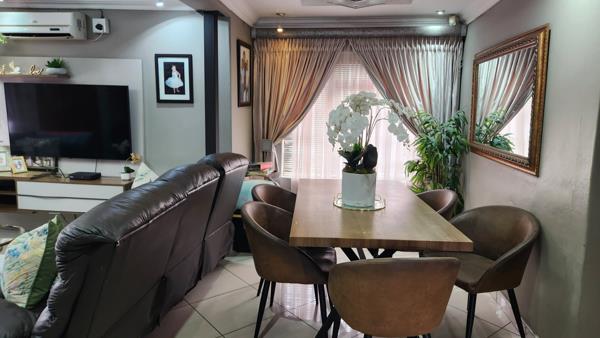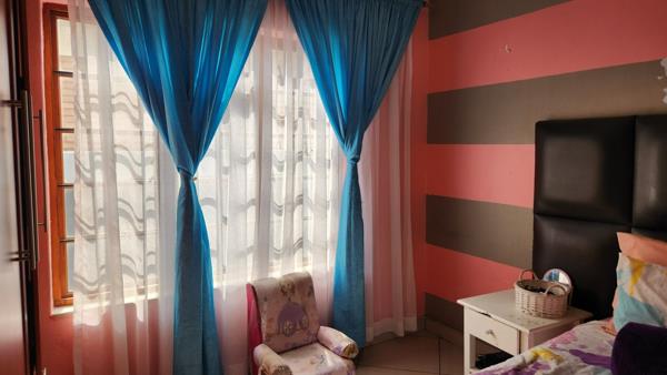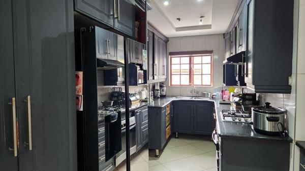 This property offers an open-plan kitchen (fitted with beautiful cupboards and a gas stove), dining, lounge, four bedrooms, two bathrooms, laundry room and double garage all downstairs.