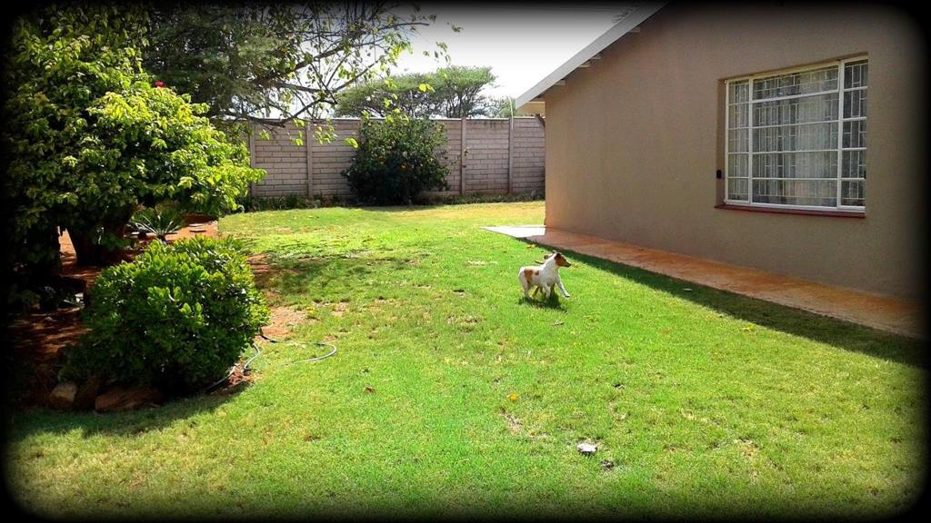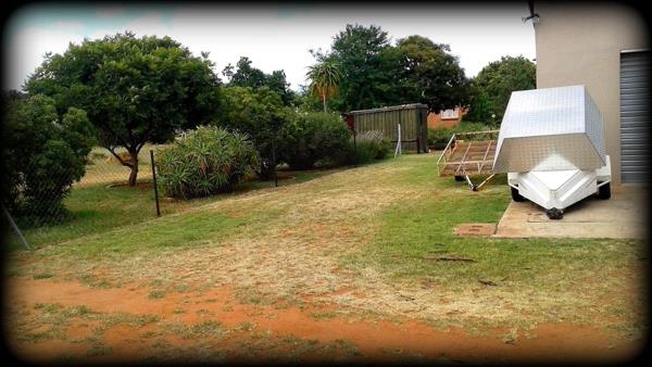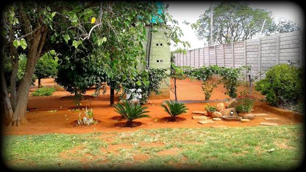 Back Yard has an extra large Lapa andamp beautiful landscape andamp garden. Theres also his andamp hers servant quarters with bathroom andamp shower. There a very neat fruit garden with guava, orange, lemon, peace, avo andamp apricot trees. 2 Boreholes andamp x2 10000L JoJo tanks with booster pump to supply this property with sufficient water throughout the years.