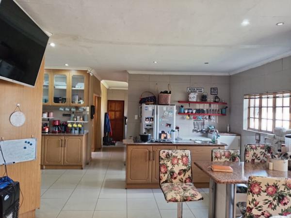 Located in the peaceful surroundings of Myngenoegen near Polokwane, this 2.1414-hectare farm combines modern living with spacious outdoor potential. The main house offers four bedrooms, including a main en-suite, with two bedrooms sharing a bathroom and a fourth bedroom that provides extra space. The open-plan kitchen and dining area connect to a scullery, pantry, and laundry room with double basins, while a guest toilet and a separate office space with its own kitchenette and bathroom add to the home''s functionality.