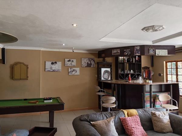 The home includes a patio for relaxing, a garage that accommodates up to five cars including a drive-thru double garage, and a casual entertainment area with a bar and pool table space. A sparkling pool is surrounded by a relaxing leisure area, ideal for unwinding, and there is a designated braai space perfect for gatherings. Two outside rooms with a kitchen and bathroom offer added convenience. The property also includes a borehole for reliable water supply, a pigsty needing light renovation, and a chicken pen that housed 300 broilers along with a feed room. Contact me to arrange a viewing and see the full potential impressive farm.