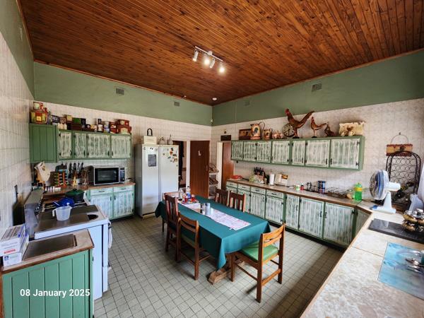 Country-Style Kitchen: Features pine wood cupboards, a massive pantry, laundry, and storeroom.