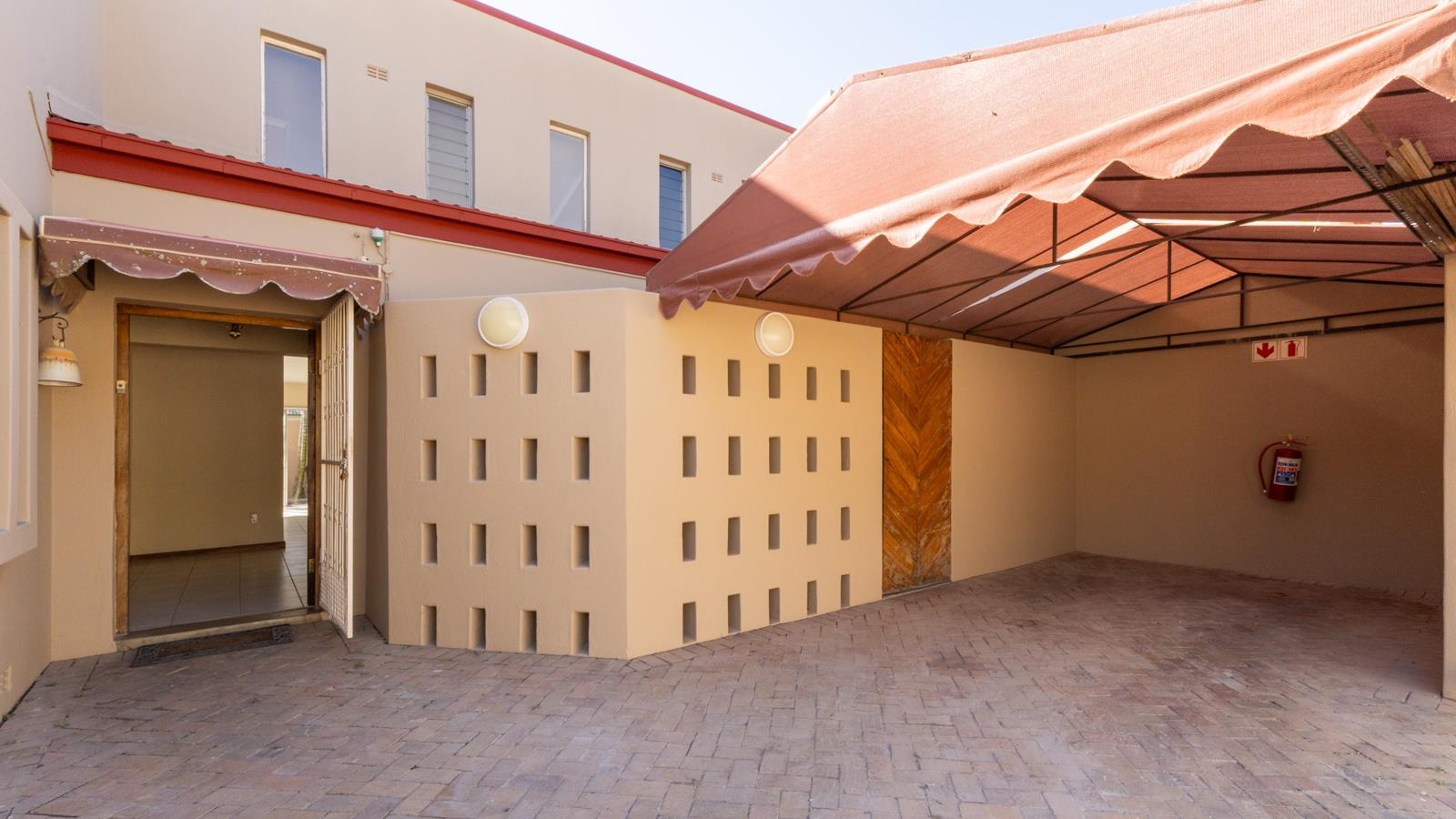 This beautifully spacious four-bedroom townhouse is a rare gem, ideally located just a stones throw from top schools and the local Tennis court. Situated in a small, secure complex with only four units, this home offers peace, privacy, and an unbeatable location. Step inside and immediately feel the difference the high-pitched roof gives the living space a grand, open and airy feel. The home has been recently re-tiled throughout, and was re-painted on the outside adding a fresh, modern touch and ensuring it is move-in ready. Outside, youll find a lovely covered veranda, perfect for entertaining, complete with a built-in braai and a jacuzzi for relaxing evenings (note: the pump needs minor repairs). Additional features include two secure carports, a private storeroom, and excellent security within the complex. This is a perfect fit for families or buyers looking for a lock-up-and-go and low maintenance home in a prime area. If youre looking for space, security, and location, this townhouse delivers it.