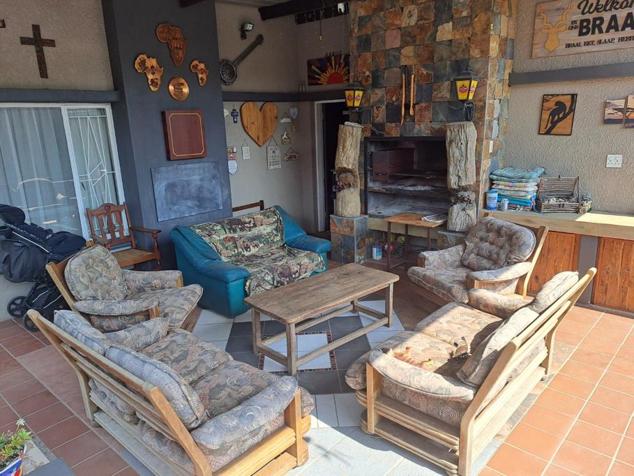 Ample parking space, underroof parking spaces for at least 6 vehicles. Walled on all sides and security gates and burglar bars.