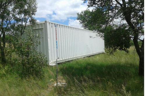 12 meter length new container on plinths - divided into two sections. The one side has a small bedroom with a toilet, basin and shower, while the other side with the
