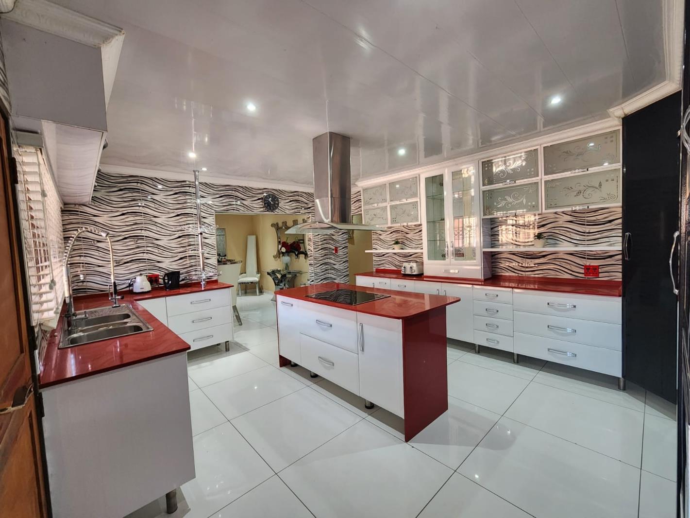 Upon entry, you''re greeted by a spacious and thoughtfully designed home. The interior boasts a cozy lounge, an elegant dining room, and a relaxed family TV room, providing ample space for relaxation and entertainment. The fully fitted kitchen (granite tops) features an island stove and is complemented by a spacious scullery that doubles as a laundry and pantry area.