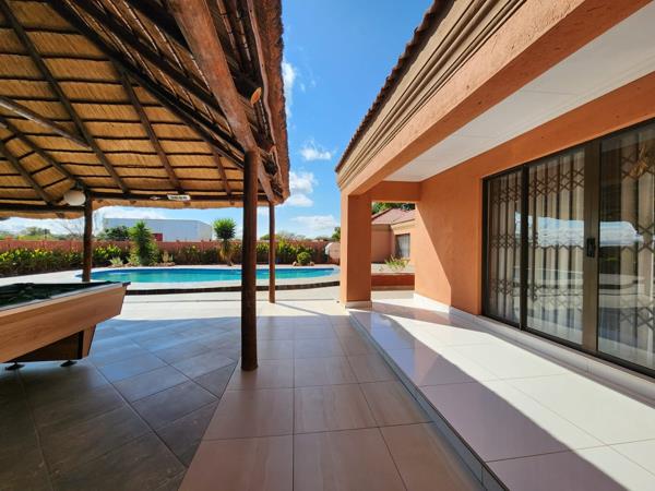 Outdoors, a sparkling swimming pool invites you to unwind, while a stylish lapa with ceiling fans and heaters creates the perfect setting for year-round gatherings. Attached to the lapa is a glass-enclosed gym room, offering convenience and privacy for your fitness routines.