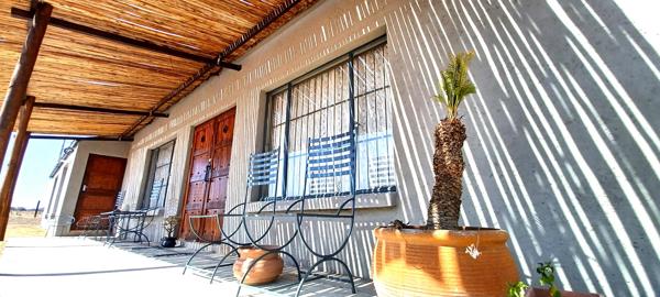 The property includes a spacious four-bedroom freestanding house, where each bedroom features its own en-suite bathroom for maximum comfort and privacy. The open-plan design of the lounge, kitchen, and dining area creates an inviting space for family life, complemented by a large walk-in pantry and separate scullery in the kitchen. A gas geyser enhances the home''s efficiency. The study area provides a quiet retreat for work, while the indoor braai area, equipped with both a traditional and gas braai, is ideal for entertaining guests. Imagine enjoying a meal while watching giraffes and kudu roam bya rare and captivating sight. The property also includes staff quarters with three rooms, ensuring your farming operations are well-supported.