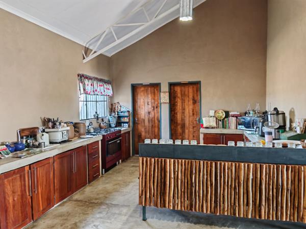The current owner has a small hobby to keep her busy. There is 2 ha that is used for farming. Currently she has watermelon planed with a further 2 greenhouses and one net house. Irrigation with strong borehole and cement dam.