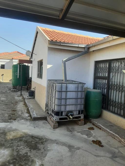 Additional features include a full bathroom, an outside toilet, a steel room suitable for storage or accommodation, a single garage with carport, and ample on-site parking. The property is fully walled with a secure gate, has a beautifully paved front yard, a JoJo water tank, and a septic tank.