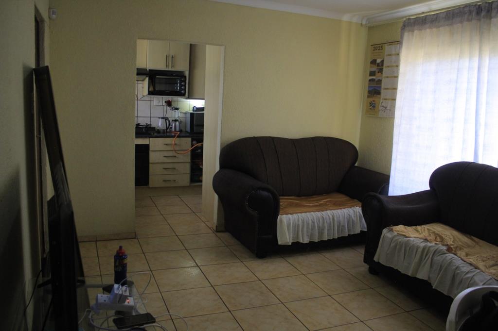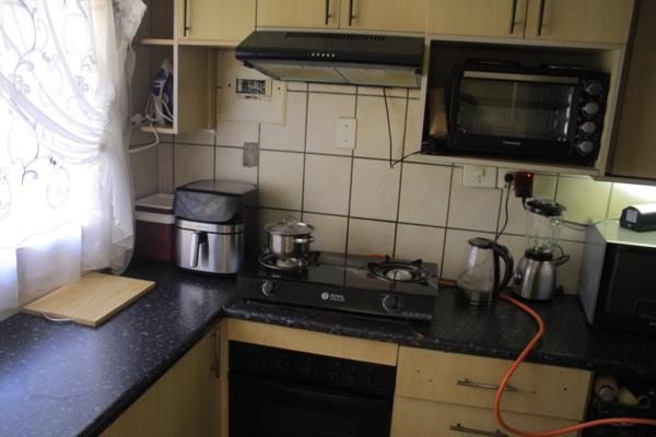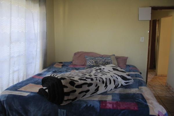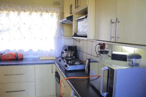 Enjoy a well-designed open-plan lounge and kitchen fitted with an electric stove, creating a welcoming space for cooking and entertaining. The drive-through double garage adds ease for vehicle access and storage, while burglar bars provide extra security and peace of mind.