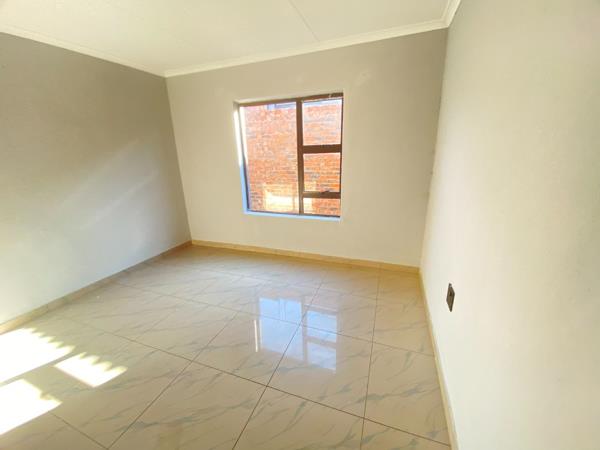 Looking for a newly build property? Look no further. Here is a 3-bedroom house in a developing area of Mahlasedi Park. It consists of 3 bedrooms, main en-suite. Totally walled with automatic gate, alarm system and active electric fence. This property is suitable for a small family and people who want to upgrade to developed areas. It is close to so many amenities like shopping complexes and hospitals.