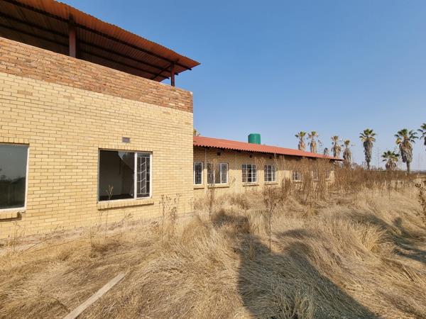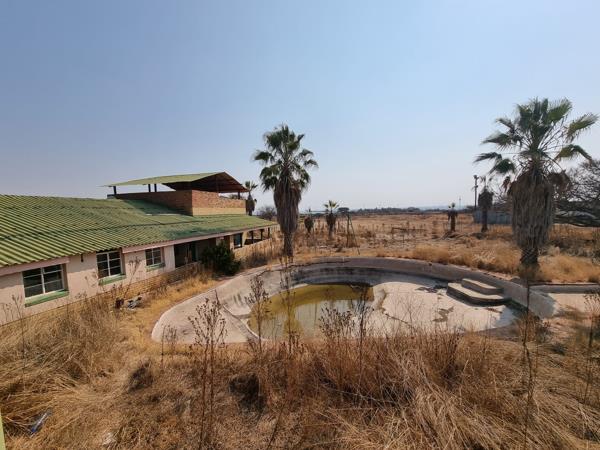 The property has a flatlet and a big house with lapa and swimming pool. Warehouse and offices. All the buildings need serous TLC but the structures are good. The property has three boreholes. Water is no problem.