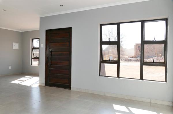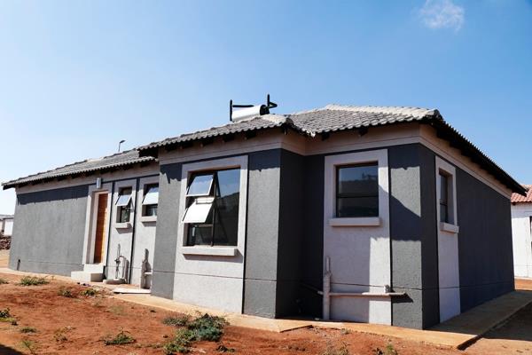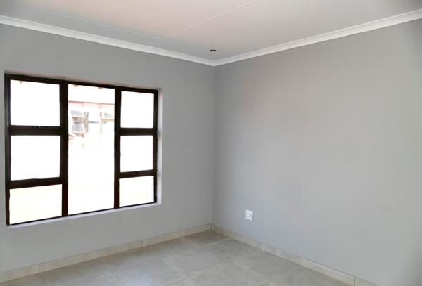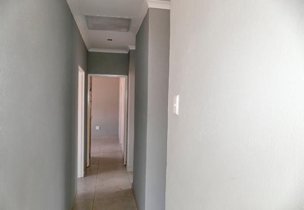 The home features three bedrooms with built-in cupboards, and two bathrooms, one of which is en-suite, solar geyser.
