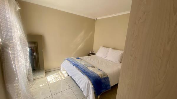 Secured with burglar bars, a security gate, an alarm system, and electric fence surrounding the perimeter of the property.