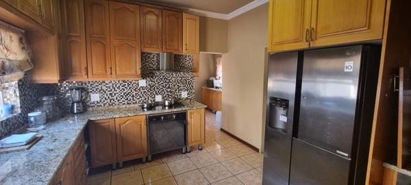 Beautiful garden, plenty of lounges to entertain visitor, pajama room, spacious bedrooms, braai area and a boardroom, pet friendly and plenty space for children to run around. High walls double electric fence as well as outside beams for extra security. Borehole and a huge swimming pool. This house just says: by me It has an extra outside toilet and a cottage