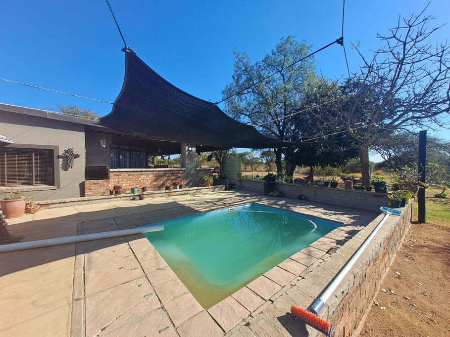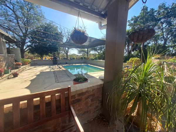 The heart of the home, a well-appointed kitchen, includes a gas stove, ample workspace, and plenty of storage perfectly suited for both daily cooking and entertaining guests. Step outside to the inviting verandah, which overlooks the bushveld, a swimming pool and boma braai area, offering a picturesque setting to relax or host friends and family.