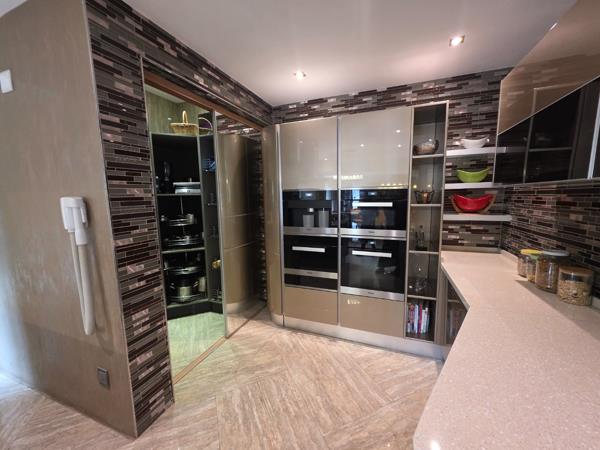 A contemporary five-bedroom house located within a secure estate, ideal for family living, featuring the following amenities:
