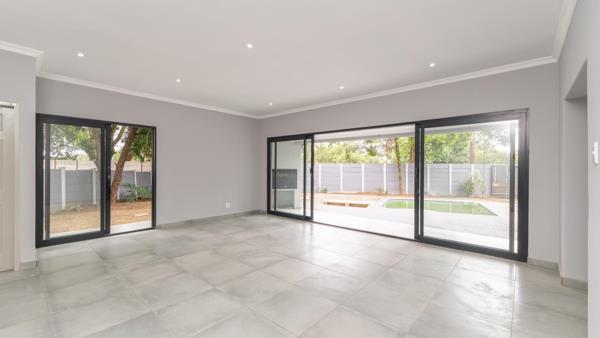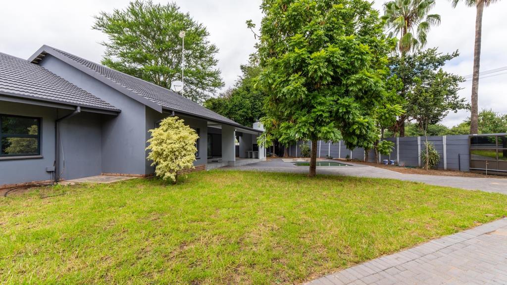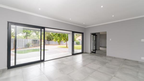 This spacious single-story residence is an ideal family home, currently undergoing an impressive renovation and soon to be move-in ready. Featuring four generously sized bedrooms and open-plan lounge, dining, and TV areas, the home has been thoughtfully designed for modern family living. The kitchen boasts a contemporary open-plan layout, complete with a scullery and pantry. Outdoor amenities include a large garden with a borehole, a swimming pool with a boma braai area, and a covered entertainment space perfect for adding a bar and hosting guests year-round. With two garages and additional carport space, there is secure parking for up to six vehicles. Additional highlights include a separate flatlet with its own bathroomideal for extended family, guests, or rental incomeas well as a nannys room for added convenience. The property is also pet-friendly, with plenty of space for outdoor enjoyment. Offering the perfect blend of comfort, functionality, and lifestyle, this home is a rare find. Dont miss the opportunity to view it before the renovation is complete. Contact us today to schedule a private viewing or to request further details.