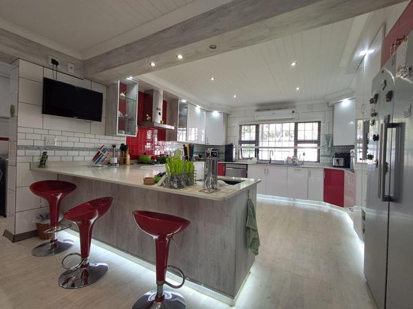 As you walk into this home you are welcomed by the entrance that takes you to the very spacious lounge area to the Entertaiment area that has a bar area and then theres a Pool and Braai area.