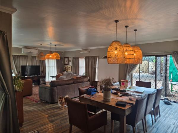 This lovely corner property offers generous space, comfort, and versatility, making it ideal for family living and entertaining. The main house features three bedrooms and two bathrooms, with a spacious layout that includes a dining area, sitting room, TV lounge, and a well-appointed kitchen with scullery. Outside, you''ll find two garages, two shade-net parkings, and additional carport space for three to four vehicles. The expansive garden is a standout, complete with a sparkling swimming pool, a strong borehole, and a 10,000-litre water tank connected to an automated irrigation system.