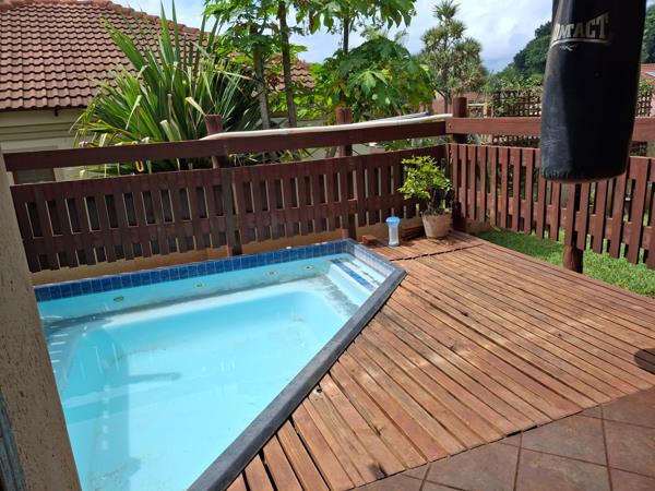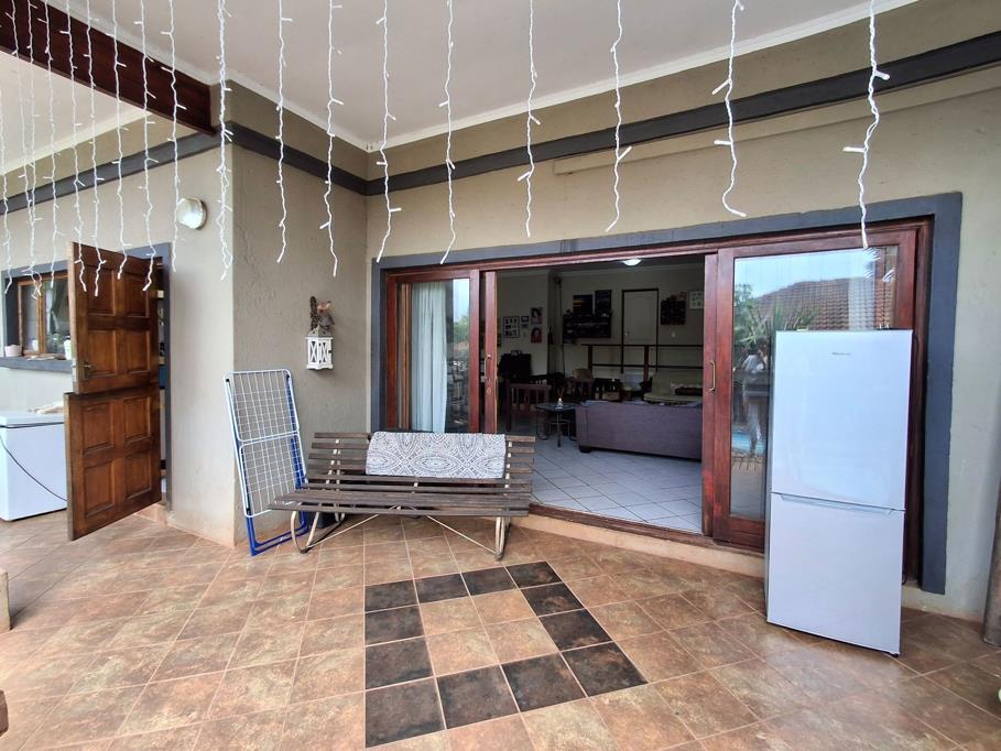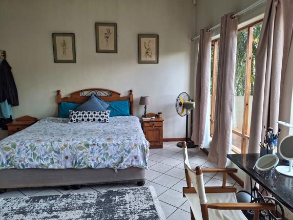 Designed to have space.. This house in a small complex, has a big inside footprint with a small garden space around. The covered patio is next to a small pool and deck area. The large family /kitchen area flows onto the stoep area.