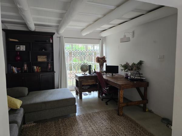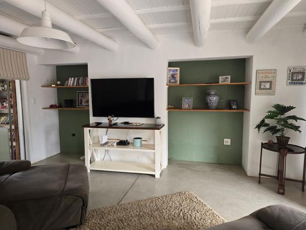 Sliding doors flow out on a lovely stoep and garden with a Jungle Gym for children to play, as well as a sparkling pool, perfect to cool off on hot summer days.