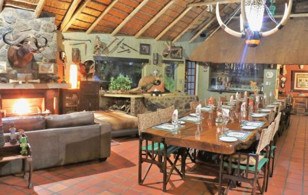 Additional features include a shooting range, a seasonal earth dam with an island accessible via a boardwalk, four waterholes with hides, and four 5,000-gallon water tanks that gravity-feed both the lodge and the waterholes.