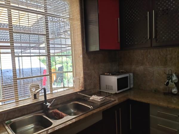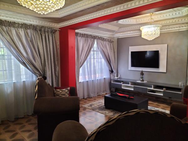 How often will you be able to find a well-established property with a peaceful atmosphere? Lovely large and modern property, with an established garden with a pool, shade net covered parking for 5 vehicles and lots of secure parking in the yard for your guests.
