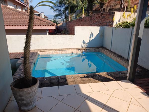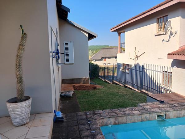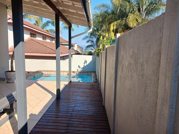 This is a lock-up-and-go, low-maintenance family home in a fully secure estate. It features 3 spacious bedrooms, 2 modern bathrooms, an open-plan kitchen, lounge, and dining room, a separate scullery, and a large stoep with a built-in braai next to a sparkling pool. It also boasts a beautiful garden and double garage.