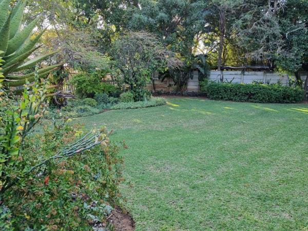 Covered patio overlooking the well-established garden