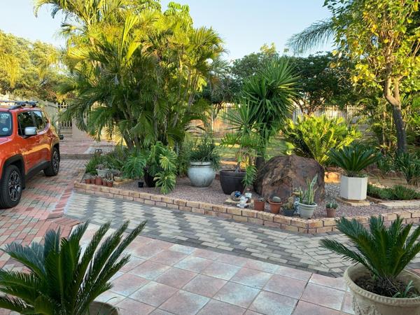 Discover this charming 3-bedroom, 2-bathroom residence nestled in the tranquil suburban setting of Bela Bela. The property immediately impresses with its well-maintained, light-colored exterior, complemented by a vibrant, tropical-style garden and extensive paved pathways, creating excellent curb appeal. A covered entrance, secured with a gate, offers a welcoming first impression.