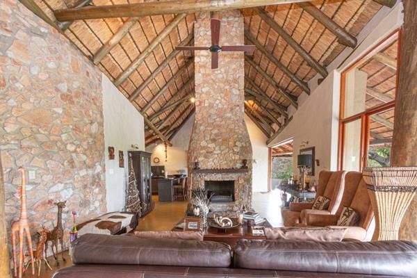 The sophisticated open plan living areas flow effortlessly onto the deck, maximising the sought after indoor-outdoor lifestyle that defines luxury Bushveld living. A striking central fireplace creates a warm focal point between the generous lounge and dining spaces, adding elegance and ambience throughout.