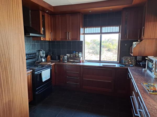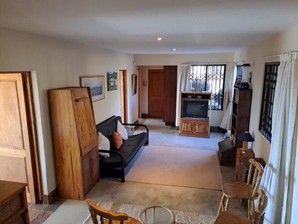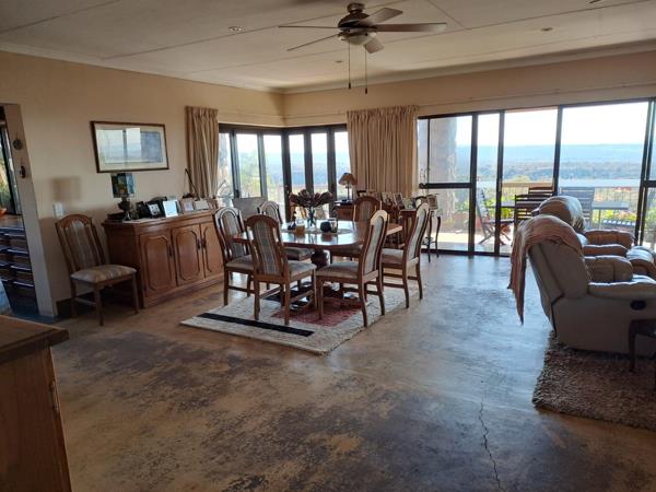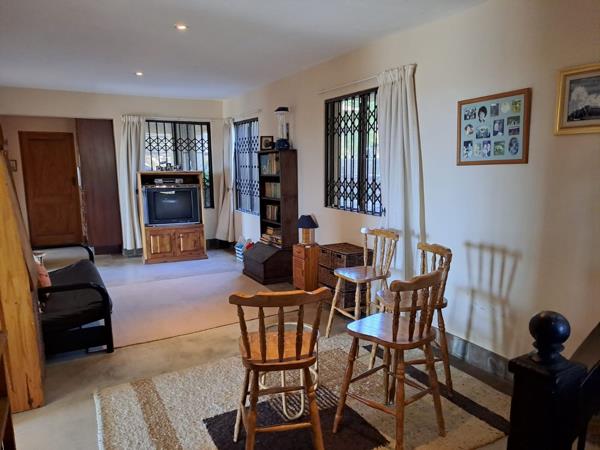 Spacious open plan lounge dining room leading to a large under roof patio verandah with a built-in braai. To counter load shedding, a 5 KW inverter with solar panels is available.